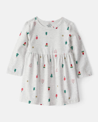 BABY GIRL LEAF PRINT LONG SLEEVE DRESS - PINK