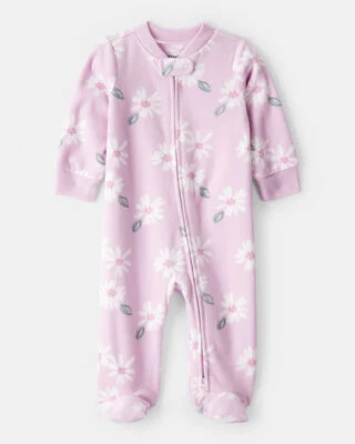 BABY GIRL APPLE PRINT LOOSE FIT LONG-SLEEVE SLEEP & PLAY PAJAMAS - BLUE
